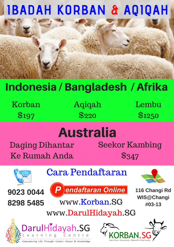 Asatizah Singapura Bersedia Untuk Membantu Perlaksanaan Ibadah Korban Tersebut Di Indonesia, Bangladesh & Australia.